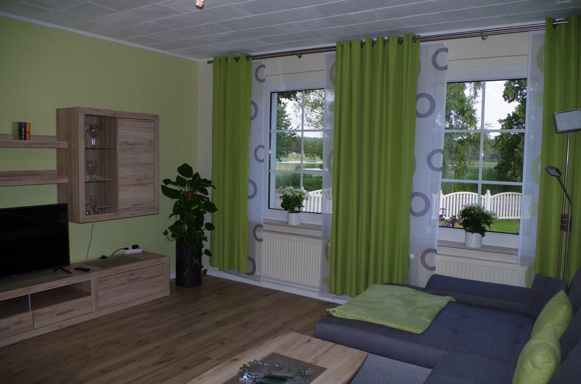 Die Ferienwohnung liegt im Erdgeschoss auf der rechten Seite des Wohnhauses, direkt am Kluger See. Sie ist mit einer eigenen Terrasse sowie einem separaten Eingang auf der Rückseite des Hauses ausgestattet. Zur Wohnung gehört ein gemeinschaftlich genutzter Abstellraum, der Platz für mitgebrachte Fahrräder oder Angelausrüstung bietet.