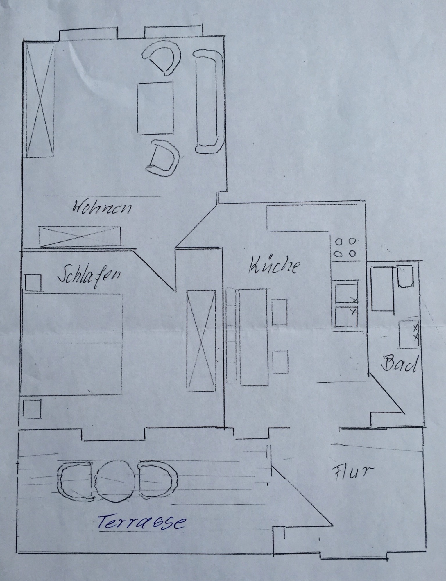 - Geschirr, Gläser, Besteck, Töpfe in ausreichender Zahl sowie diverse Küchenutensilien